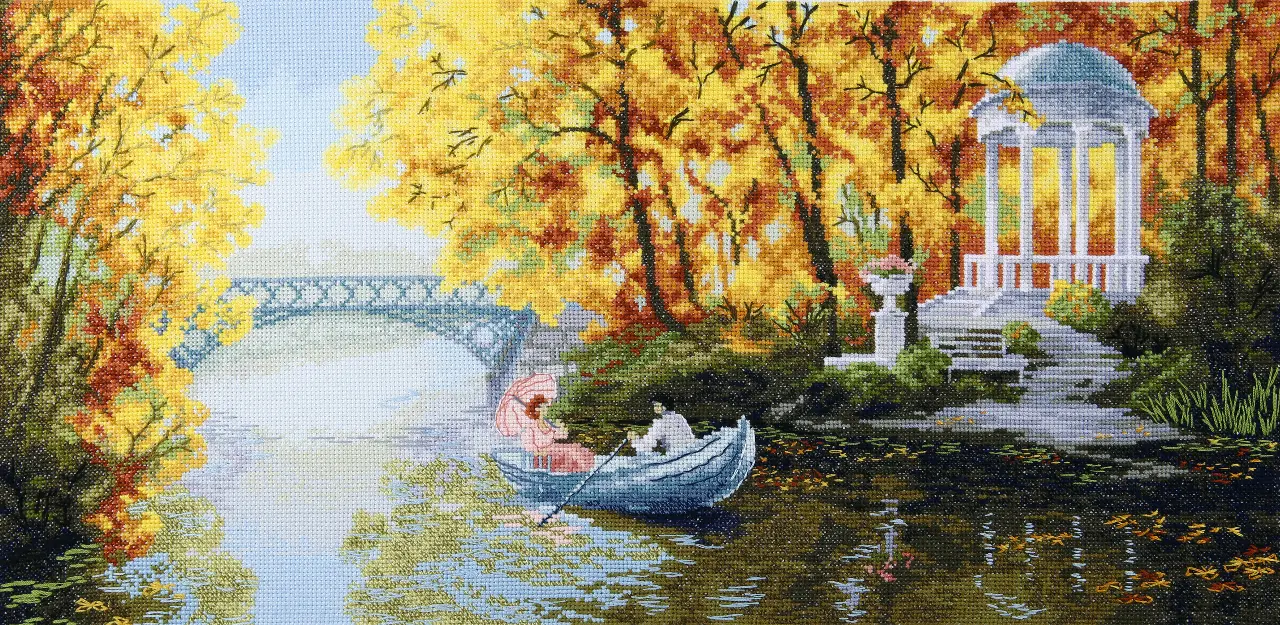 A carved bridge, a romantic gazebo, a calm expanse of water and a boat with a couple in love frozen on the mirror of the river - this is the plot of this set and, frankly, it fascinates!