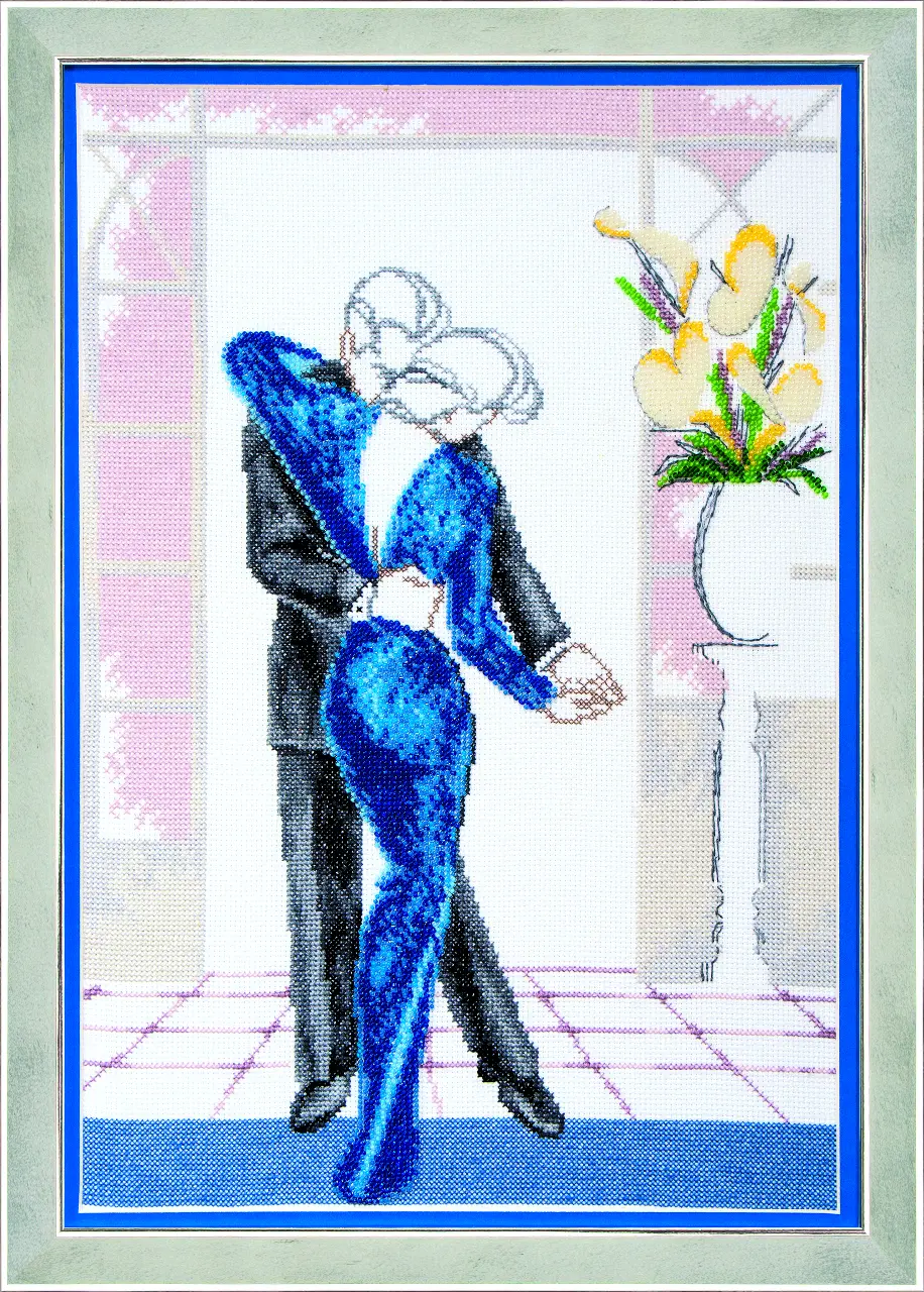 The kit contains: instruction chart, color stitch pattern, Aida 14 Zweigart, Preciosa beads - 9 colors, mouline Madeira - 11 colors and a needle.